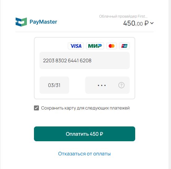 Финальный этап оплаты — ввод реквизитов и подтверждение транзакции.